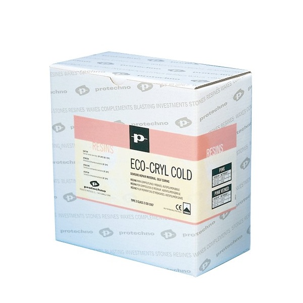 Eco-Cryl cold. Resina autopolimerizable a base de metil-metacrilato para reparaciones composturas y rebases. Polimerización rápida.