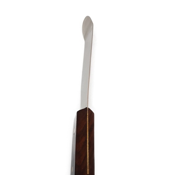 Espátula de alginato curva GNZ. Espátula curva metálica para batir alginato con mango de madera.