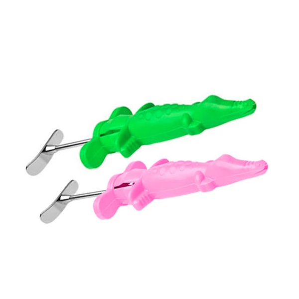 Fundas cocodrilo para anestesia. Fundas para las jeringas de anestesia, indicadas para disminuir la ansiedad de los más pequeños a las agujas. Facilitan el trabajo del dentista durante la anestesia, pueden ser entregadas a los pacientes como regalo después del tratamiento, son esterilizables, permiten la inserción de la aguja gracias a su tapa y son compatibles con agujas convencionales y extra cortas.