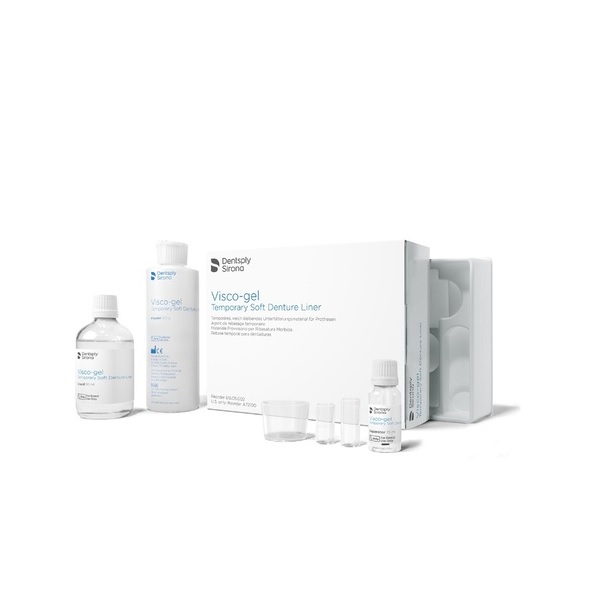 Viscogel. Acondicionador de tejidos. Visco-gel Base Temporal Suave para Removibles es una formulación de metacrilato elástico de auto-fraguado, destinada a su uso como material de recubrimiento blando por tiempo limitado para prótesis dentales completas y parciales. Cumple con el ISO 10139 para materiales elásticos de revestimiento temporales para prótesis removibles.